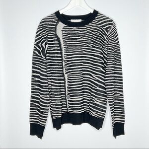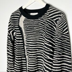 A.L.C. Cayero Zebra Print Wool Sweater Crew Neck Black Gray LARGE