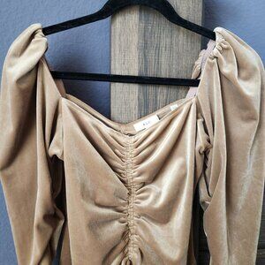 ALC Chamberlain Velour Ruched Top Women's 8 Sweetheart Neck Long SleevesChamberlain Top in toffee with velvet design and ruched detailing Approximately 21in from shoulder to hem 91% polyester, 9% elastane Dry clean only Check out our other items and message for discounted shipping on combined orders!