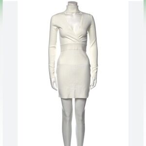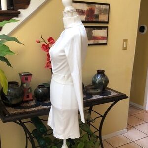A.L.C. Choker White Form Flattering Long Sleeve MIDI Sheath Dress Size Small
