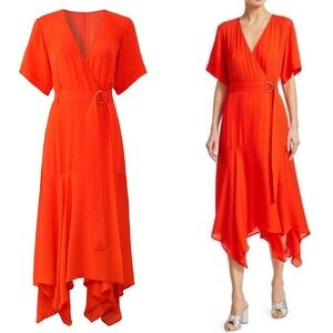 A.L.C. Claire Red Silk Wrap Handkerchief Midi Dress Size 2 NWT $575