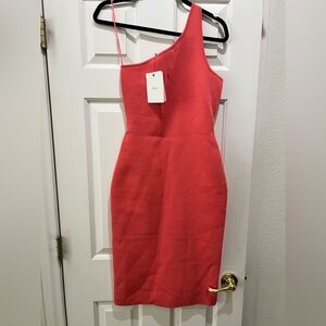 A.L.C. "Colby Asymmetric" one shoulder dress in a coral orange