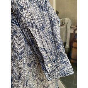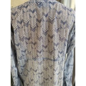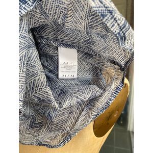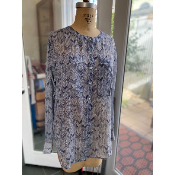 ALC 100% Cotton Blue & White Graphic Print Button Down Long Sleeve Top Size M Made in USA
