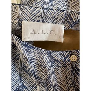 ALC Cotton Blu & White Graphic Print Button Down Long Sleeve Top SZ M Made USA