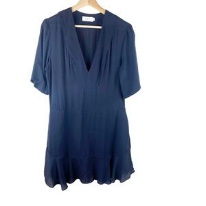 A.L.C. Delaney Short-Sleeve Silk Shift Dress Navy Blue Size 6