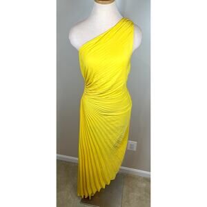 A.L.C. Delfina One Shoulder Pleated Ruched Cutout Sole Yellow Maxi Dress Size 10