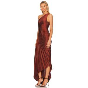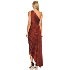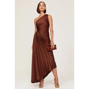 A.L.C. Delfina One-Shoulder Cutout Pleated Dress in Brunette Size 4