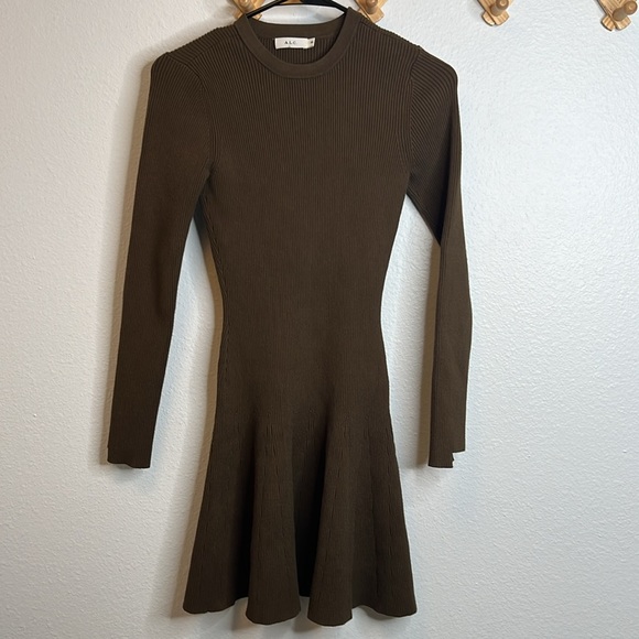 A.L.C. Delia Knit Ribbed Sweater Flare Dress