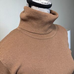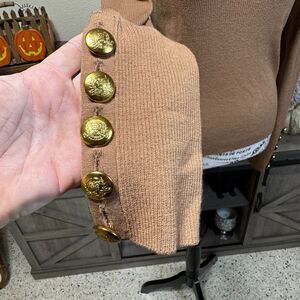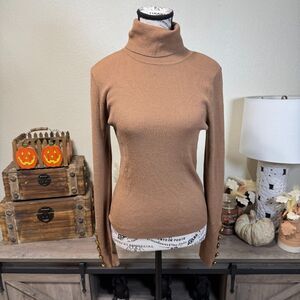 A.L.C Desi Wool Turtleneck Sweater Camel Sz L Button Sleeve Classic Professional