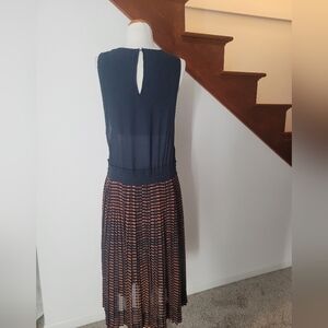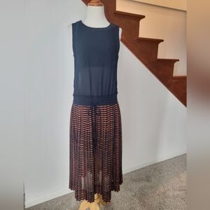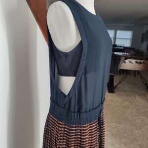 A.L.C. Dress Size M Navy Brown Pleated Striped Chiffon