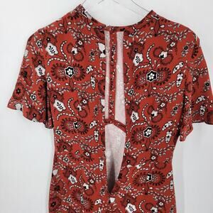 A.L.C. Dress Womens 0 Orange Black White Floral Silk Short Sleeve Mini Zip Back