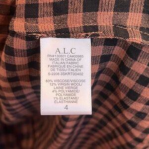 A.L.C. Eden Brown and Black Checked Wrap Midi Skirt Size 4