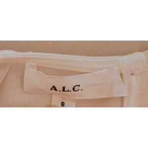 The A.L.C. Elegant White Evening Sleeveless Blouse Top in size 8 is a stylish and sophisticated choice for party or cocktail occasions. Made from a viscose acetate blend fabric, this solid white blouse features a button closure and a strapless design. With a sleeveless style, this top is perfect for the summer and spring seasons, offering a chic and elegant look for any event. The A.L.C. brand ensures quality and timeless style, making this blouse a versatile and flattering option for any woman's wardrobe.