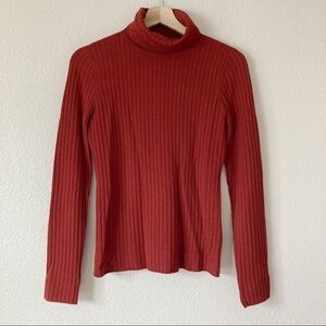 A.L.C. Elisa Ribbed Knit Turtleneck Merino Wool Blend Sweater in Peony (Rust Red) Womens Size Medium