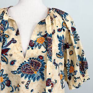 Size 10 A.L.C. Ellis top. Yellow floral print cotton fabric. V-neck with side ties. Puff sleeves with elastic cuffs. Great condition!