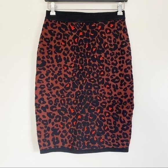A.L.C Ellwood Leopard Print Pencil Wool Skirt S