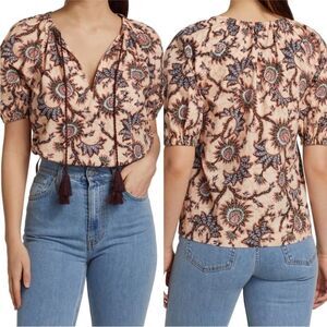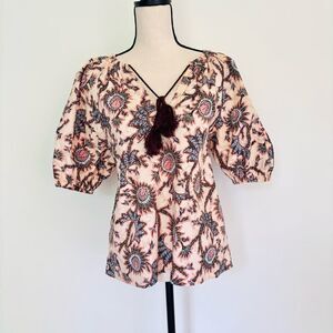 A.L.C. Elly Blouse - Floral Puff Sleeve Tassel V Neck Top Size 10