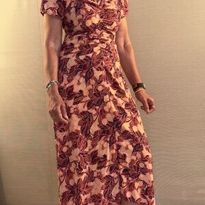 A.L.C. Elodie Printed Waist Gathered Midi Dress Pink/Blue