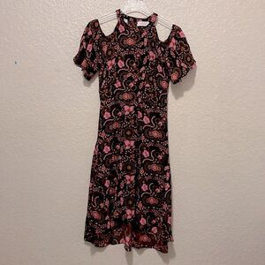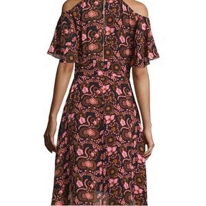 A.L.C. Emile Silk Floral Silk Cold-Shoulder Dress, Black/Henna/Pink Size 2