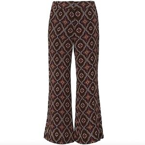 Medallion patterning in a rich palette lends opulent depth to flared leg silk pants!