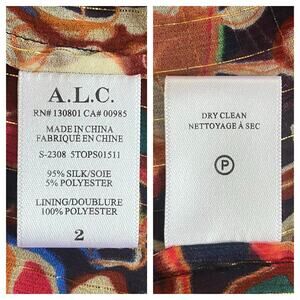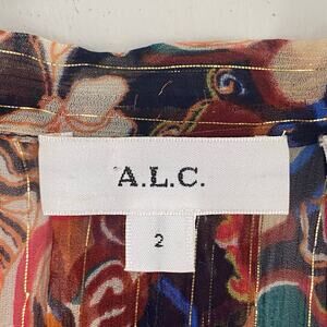 A.L.C. Frida Silk Top Semi Sheer Blouse Size 2 Port Wine Multi Billowy Flowy