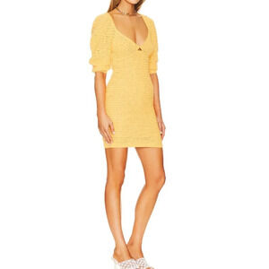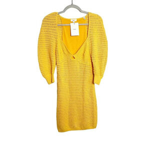 A.L.C. Gigi Crochet Knit Dress Yellow Women's Size Medium Elastic Cuffs Mini