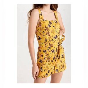 ALC Gilmour Print Linen Belted Romper yellow 6 NWT