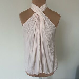A.L.C. Glace Cream Pleated Halter Neck Keyhole Back Spring 2022 Rio Top EUC 00