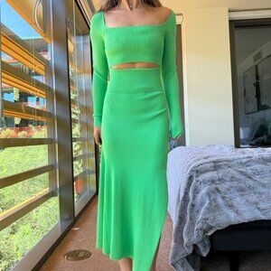 Worn once. In excellent condition. No visible flaws. No zipper, has a lot of stretch. Size small.