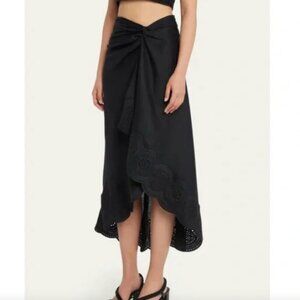 ALC Heather Linen Eyelet Twist Midi Skirt