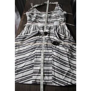 ALC Hudson Halter Mini Dress Stripe Pockets White Black *Altered* As Is Size 4, in good pre-owned condition: no holes, moderate wear, halter straps have been altered, some slight staining (see photos), has not been recently cleaned, may be stale from storage. Marked as a women's size 4, measurements are taken while laying flat and are approximate: (see photos)