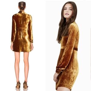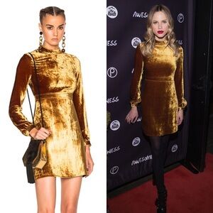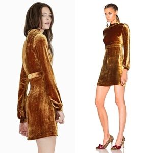 ALC Italian Silk Blend Velvet Mockneck Puff Long Sleeve Empire Waist Dress 6