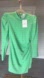 Side ruching creates textural dimension on this long-sleeve dres that's rendered in a bright hue reminiscent of a spring day.