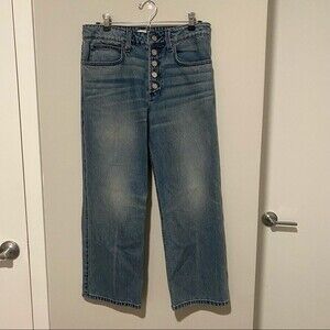 A.L.C. Jeans Denim Montag Exposed Button Fly Medium Blue Wash Wide Leg Cropped 6