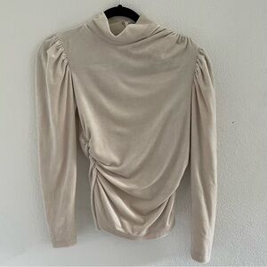 A.L.C. Joss Rice Cream White Corduroy Mock Neck Ruched Long Sleeve Top Size 0