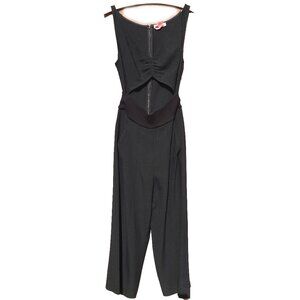 ALC Jumpsuit Black Crepe V Neck Sleeveless Cutout Waist Wide Leg Crop 2