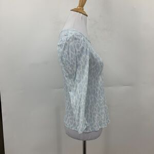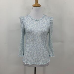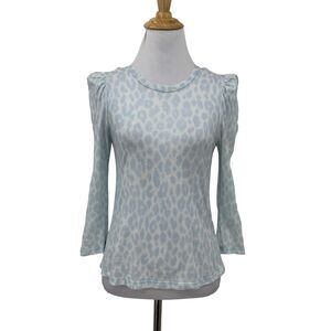 ALC Karlie Top Womens S Leopard Cotton Crew Neck Puff 3/4 Sleeve Pullover *READ