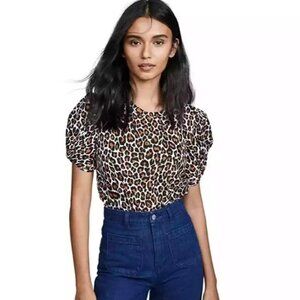 A.L.C. Kati Leopard Tee Size XS Animal Print Short Ruched Sleeve Top Cotton