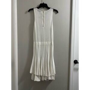 As worn by Rihanna. Rihanna spotted out at night in NYC wearing a white knit Lena dress by A.L.C which features a scoop neck detail and a flounce skirt