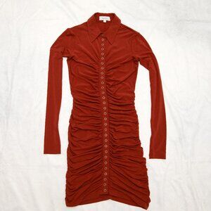 A.L.C. Larsen Brown Ruched Long Sleeve Minidress with Buttons Size XS