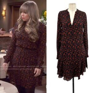 A.L.C. Legend Dress Silk Long Sleeve Paisley Print Rust Black Size 6