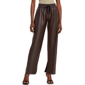 A.L.C. Leo Brown Faux Leather Brown Pants Wide Straight Leg Ankle Size 0