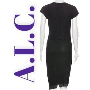 A.L.C. Black Linen Blend Bodycon Ruched Wrap Zipper T-Shirt Dress, Size Medium