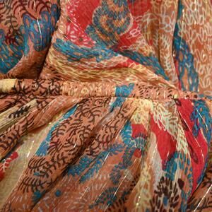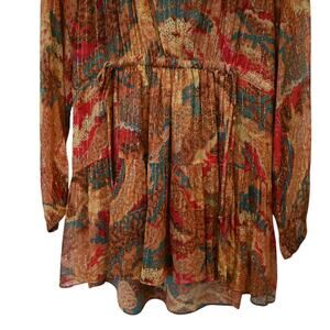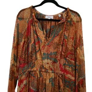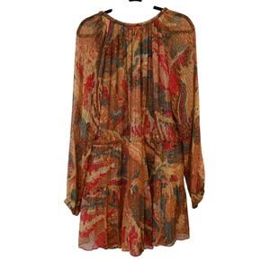 ALC Long Sleeve Dress Sz 10 Orange Red Paisley Print Sheer Gold Stripe Pullover