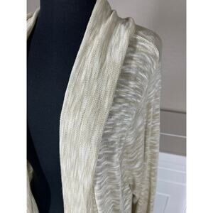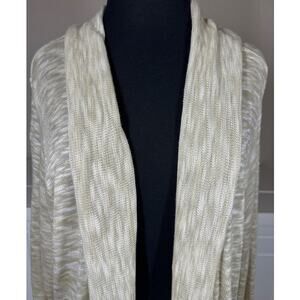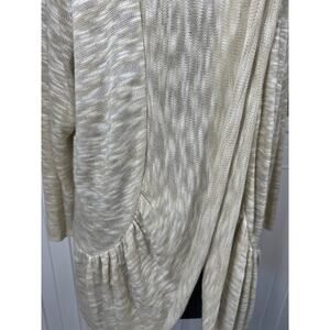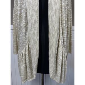 ALC Long Sleeve Shawl Collar Slub Ruffle Open Cardigan Tan White Sz 3X Vintage