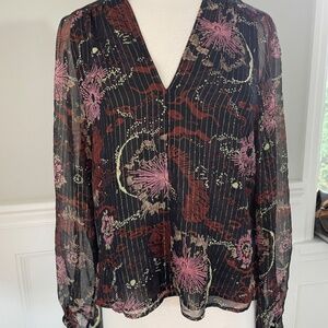 WORN ONCE - EXCELLENT CONDITION! A.L.C. MAC METALLIC SHIMMER FLORAL SILK BLEND GEORGETTE BLOUSE SIZE 4!