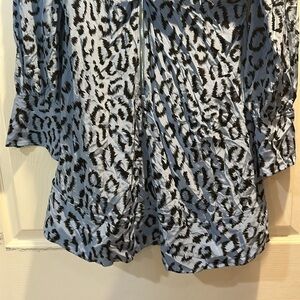 Gently worn A.L.C. Marcella Blue Leopard Print Silk Mini Dress women’s size 10. 100% silk, light blue with black leopard print, full zipper up front, long sleeves with cuffs at wrist, ruching down sides of body, mini length- hits above knees, fully lined. As seen on many celebs! Offers accepted!