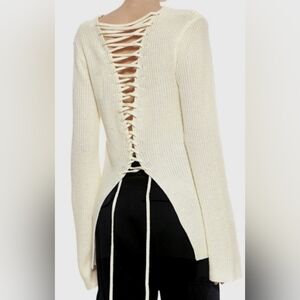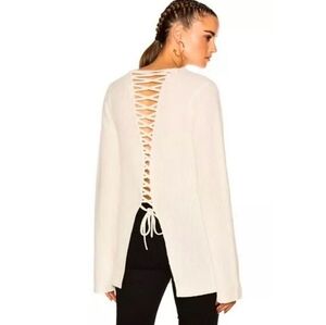 A.L.C Markell cashmere Wool blend Lace Up Sweater cream womens large #002