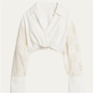 A.L.C. "Mason" front twist linen top featuring eyelet detailed sleeves