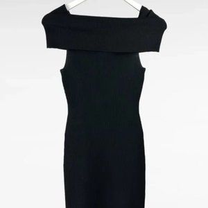 The Mercier mini dress from A.L.C. is made in a black form-fitted rib knit, and features an off the shoulder cut on the neckline.