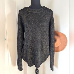 Description: A.L.C Merino Wool Alpaca Gold Metallic Sweater Maximalist Whimsigoth Preppy Dark Academia MD, ribbed collar, cuff and hem, cute criss cross back detail, made with Italian yarn